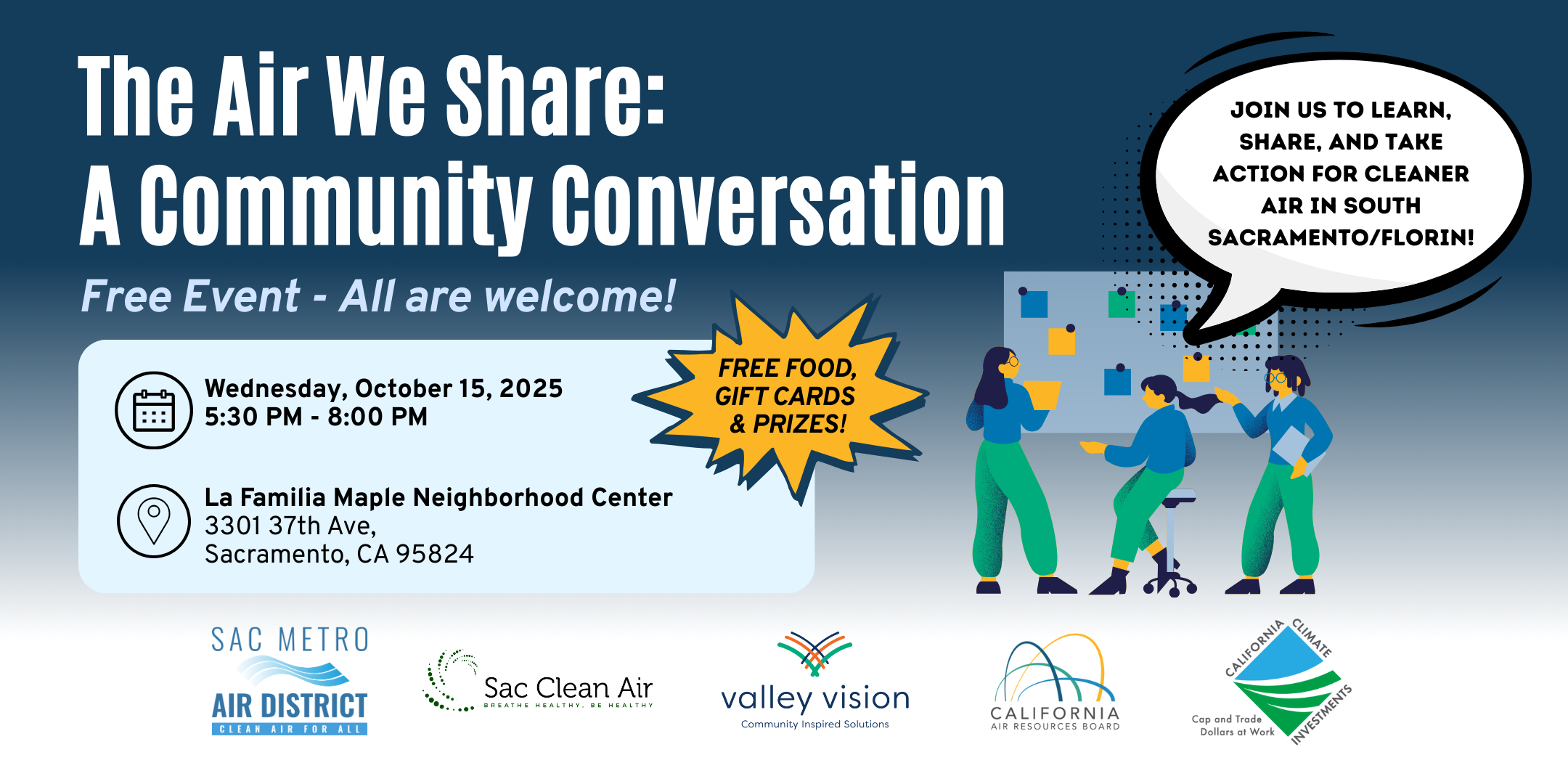 The Sacramento Metropolitan Air Quality Management District, California Air Resources Board, Sac Clean Air (AB 617), and Valley Vision are hosting a FREE community workshop where you will:
